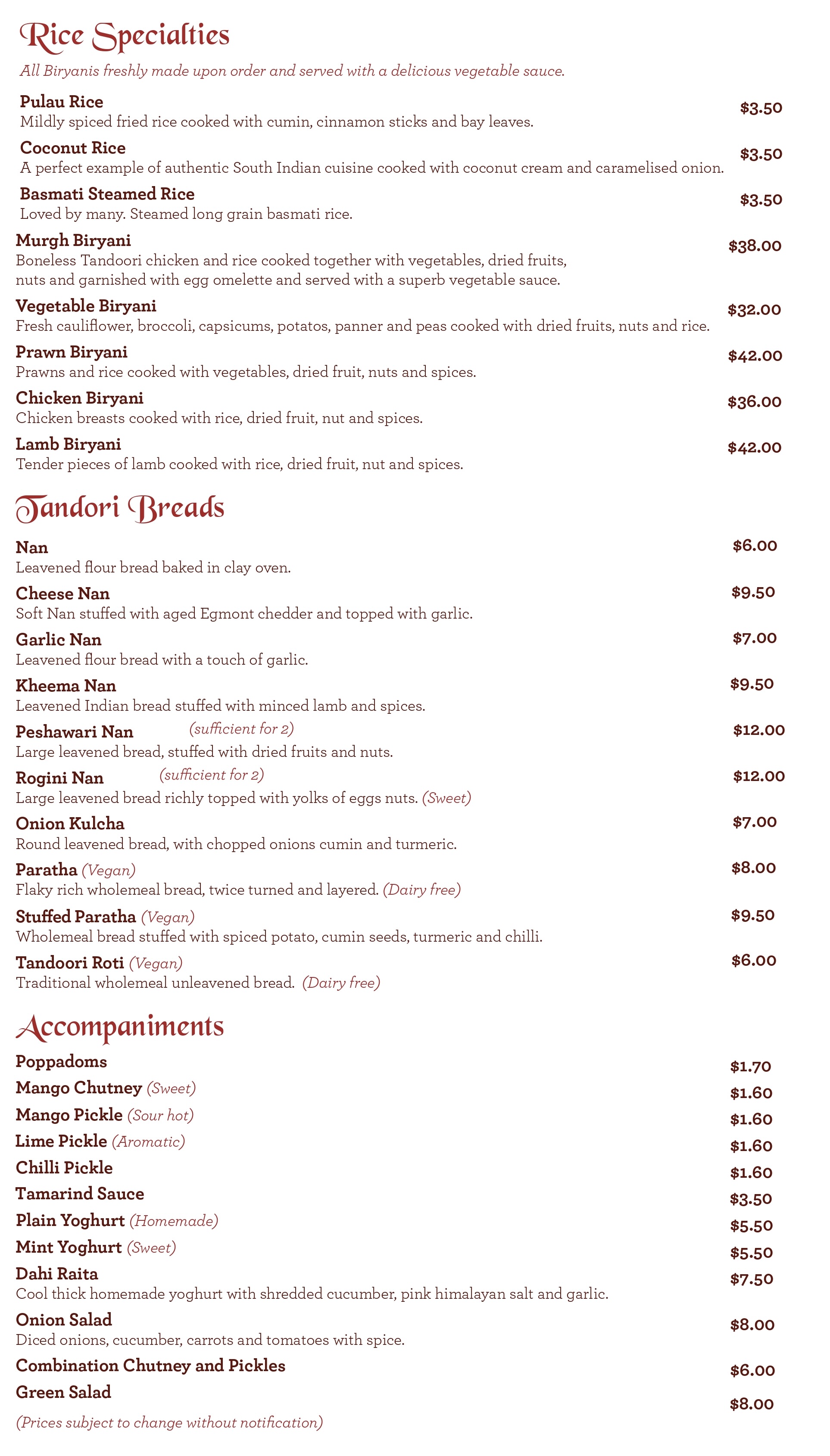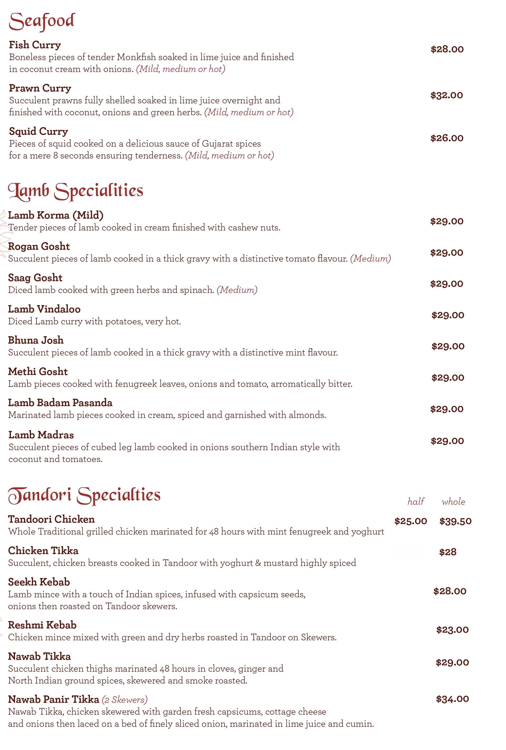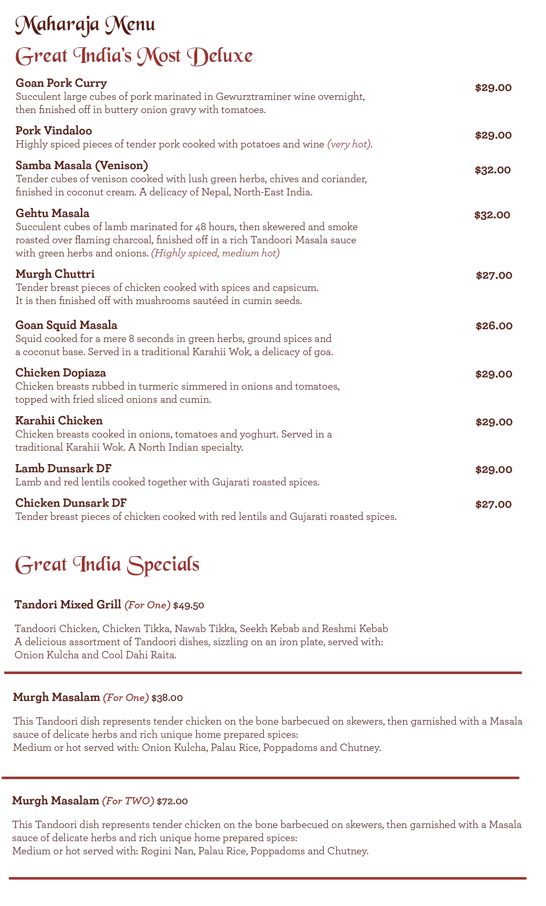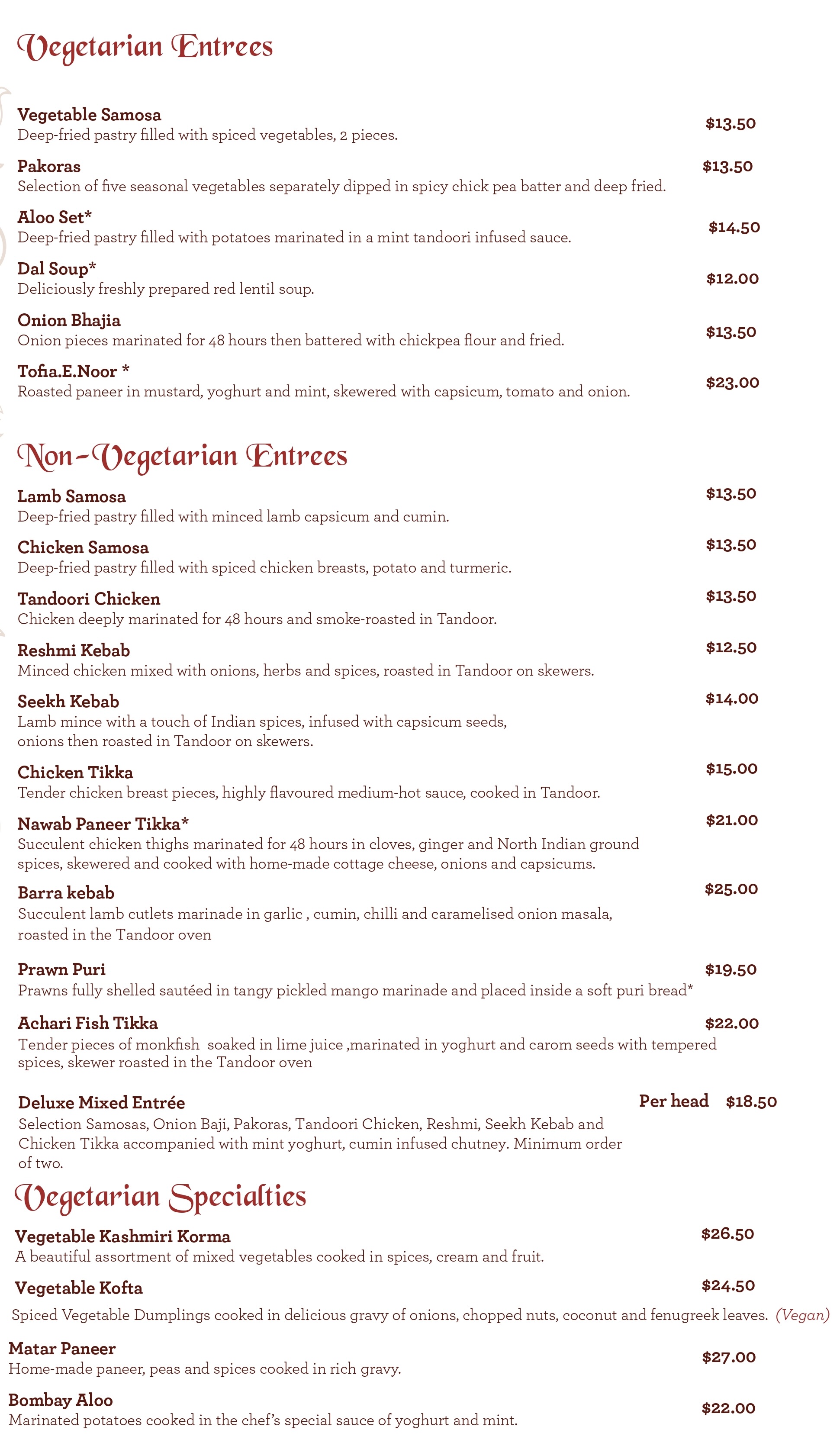 * indicates the dish that are not the part of the Deluxe Mixed Entrée