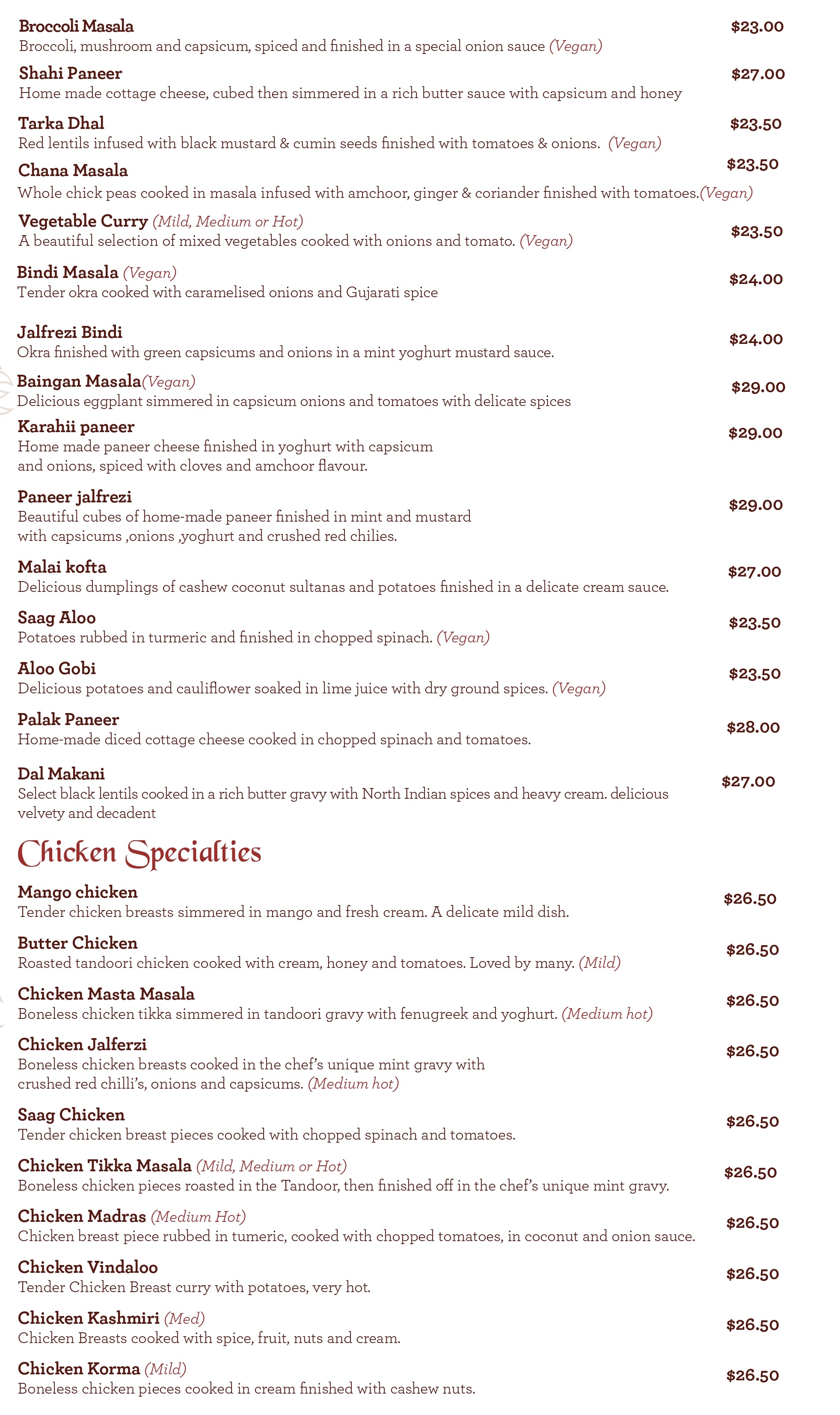 and Chicken Tikka accompanied with mint yoghurt, cumin infused chutney. Minimum order of two.